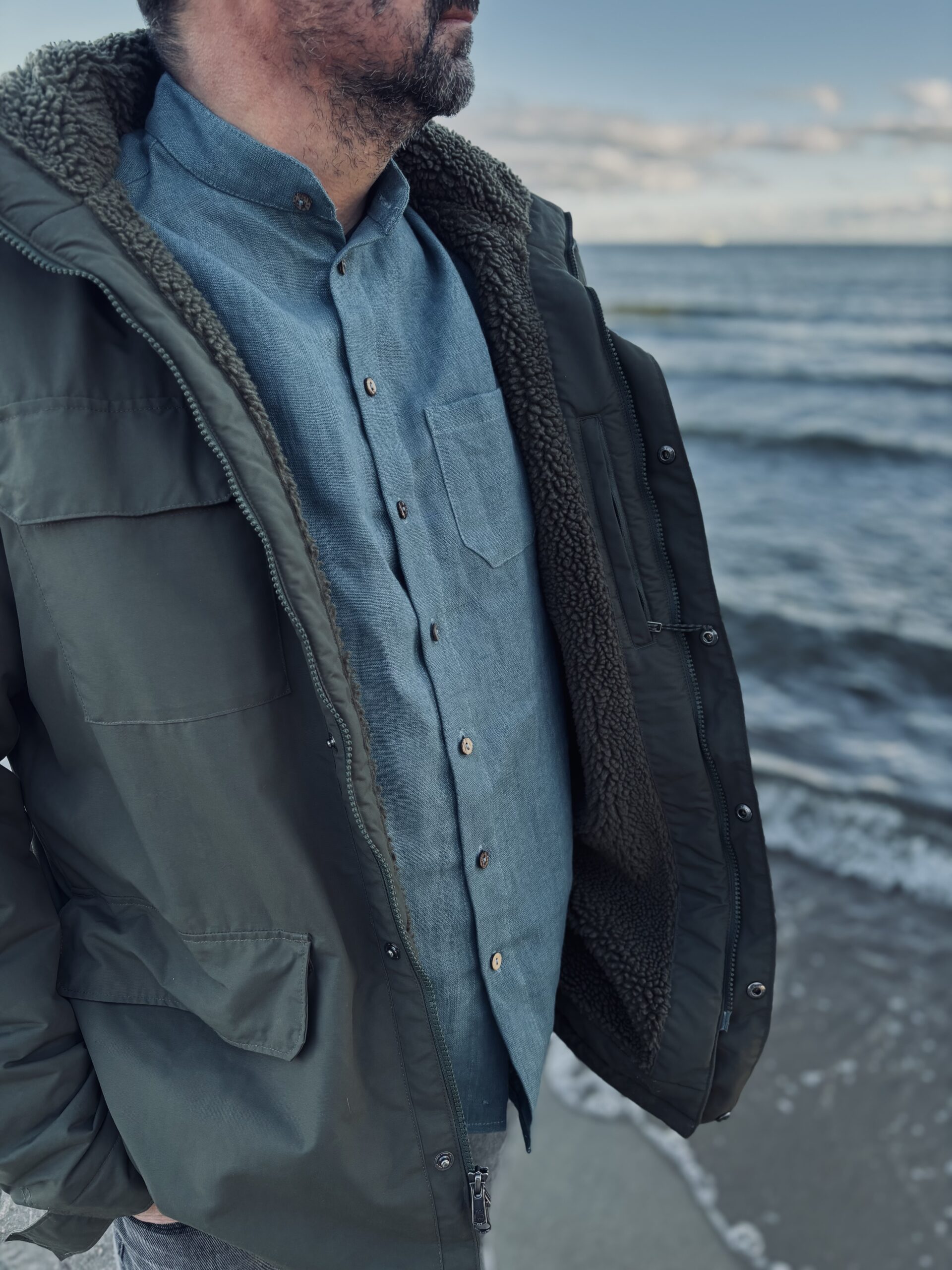 Lněná košile s dlouhým rukávem, která Vás v zimě zahřeje.